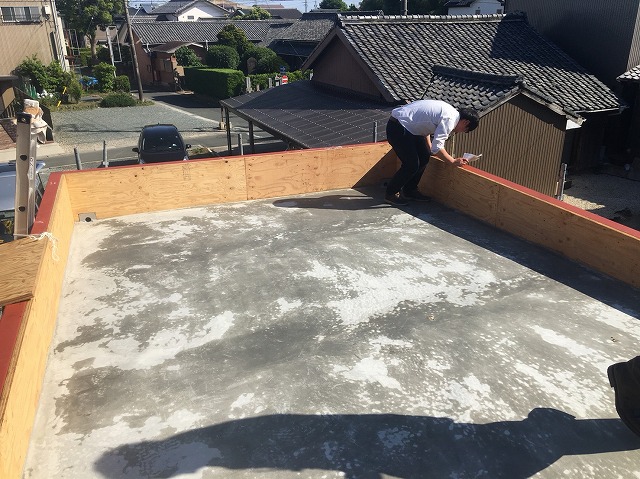 陸屋根の場合どうしても屋根に水を溜めないように水勾配と呼ばれる小さな傾斜がついています