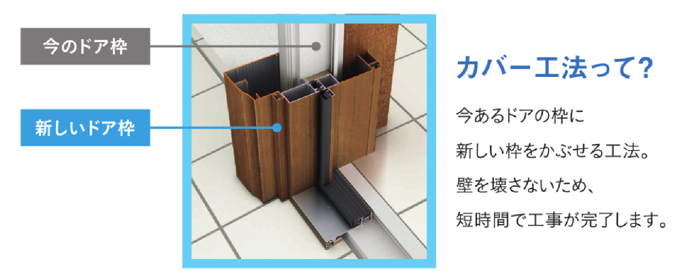 YKKAPドアリモはカバー工法といわれる工法で工事をします