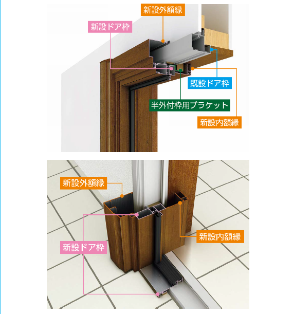 今ある玄関の枠は壊さず、新しい枠をかぶせる方法です
