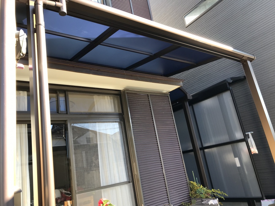 豊橋市で、雨漏りや日よけ対策として熱線遮断ポリカーボネート板を用いたテラス屋根設置の工事がありました!