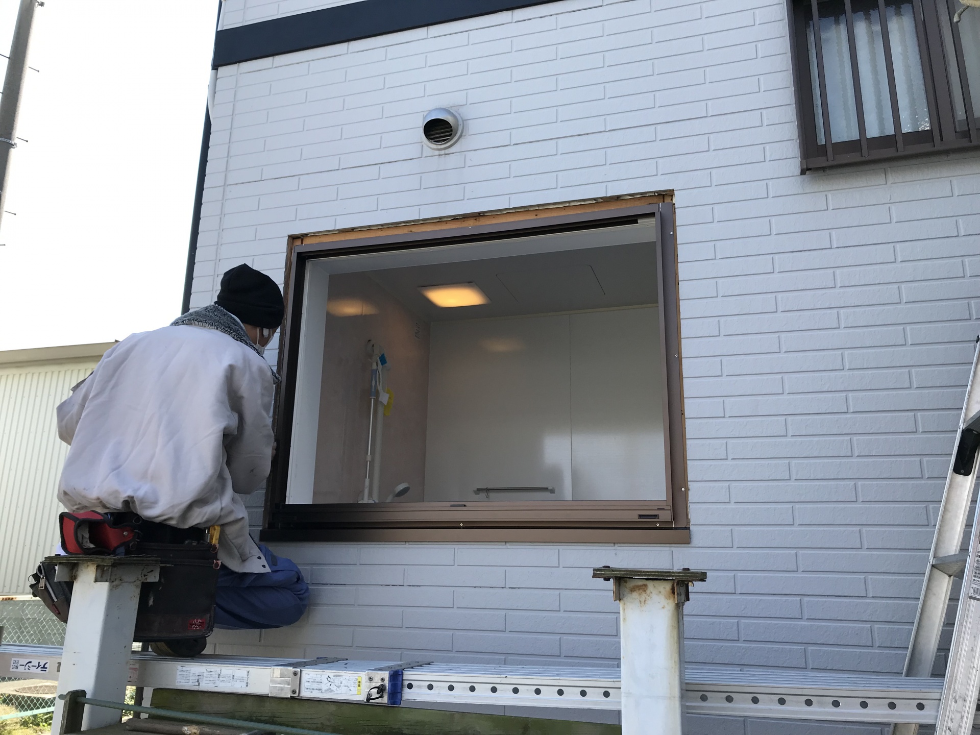 壁を削った部分に新しいサッシと水切りが設置されました!