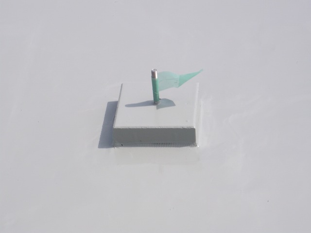 太陽光発電の架台設置用の基礎を防水工事開始前に取り付け。これは既存のコンクリート屋根に穴を開けて取り付けるだけの簡易的な基礎で、太陽光発電メーカー(シャープ)の専用部材です。