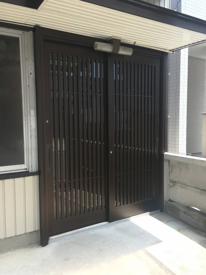 玄関の動きも悪くなり、枠も歪んできたので新しく取替することになりました