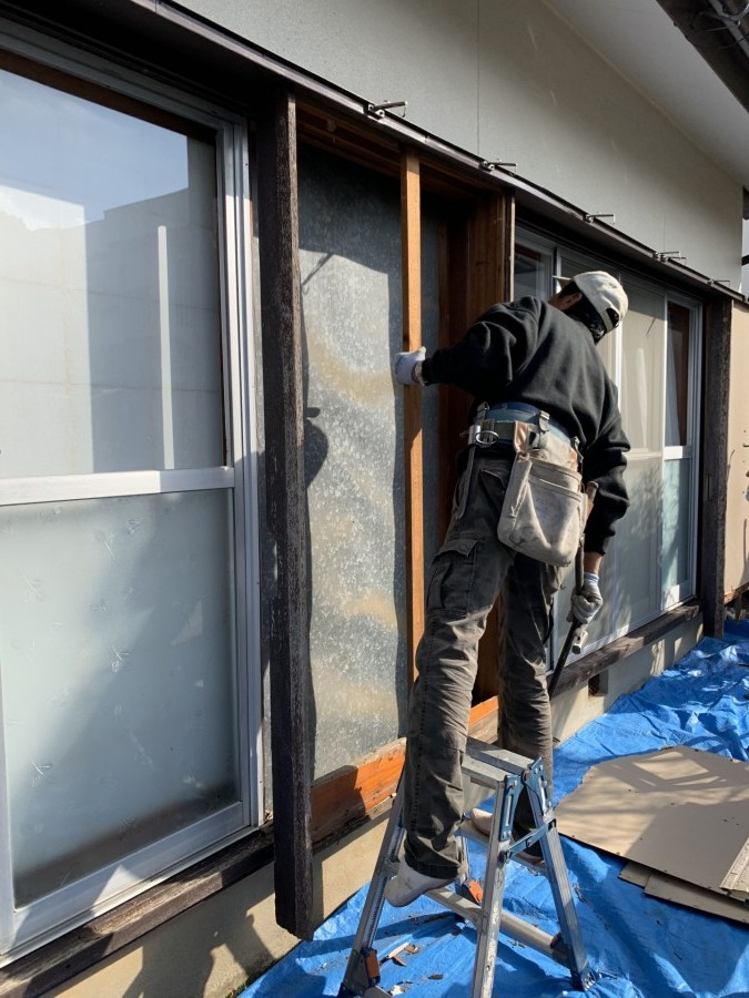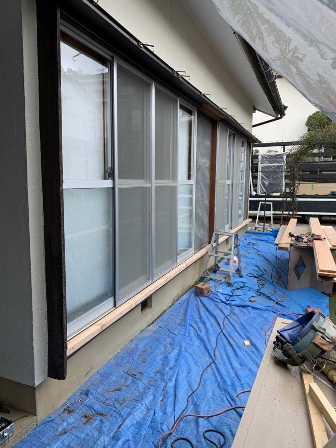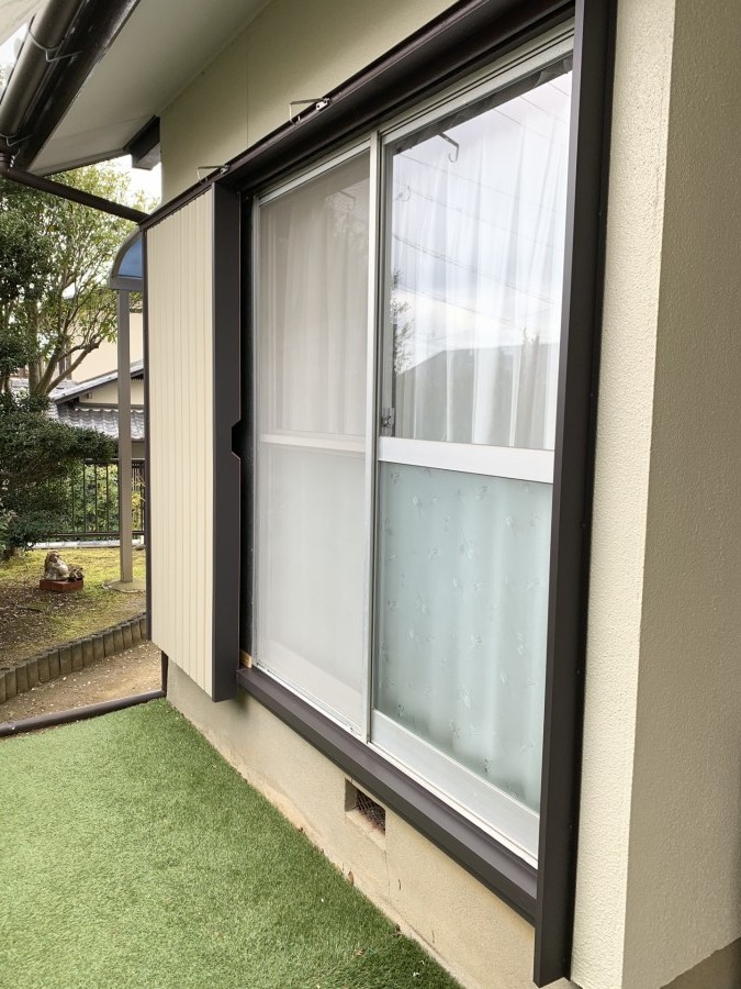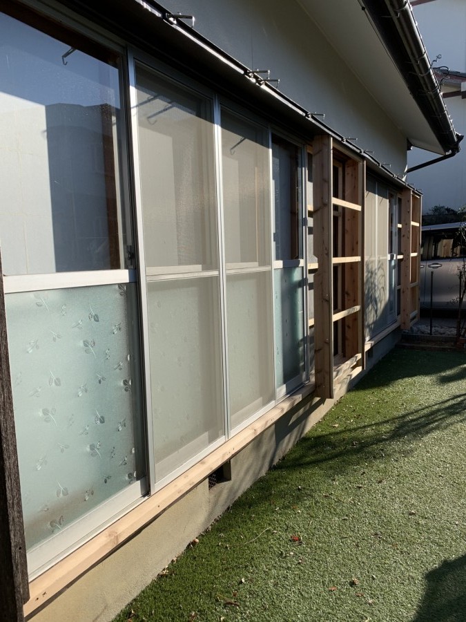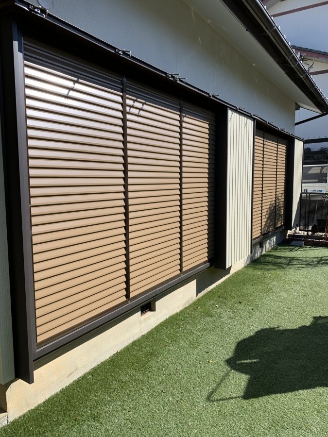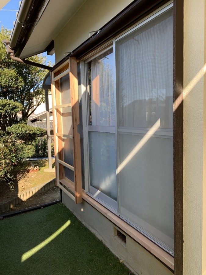 もともと木製の雨戸・戸袋がついていましたが、昨年の台風でいざ雨戸を出そうしてみると雨戸は外れそうで戸袋も底が抜けそうで大変な思いをしたそうです。