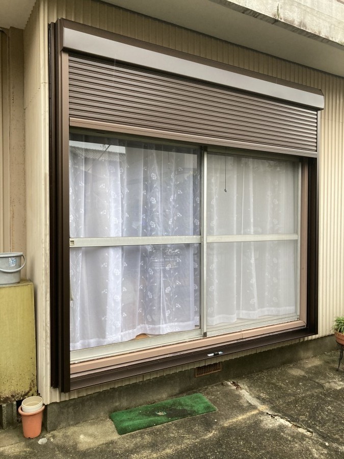 後付けで簡単にシャッターや雨戸が付けられますの台風対策には非常に安心な商品です。