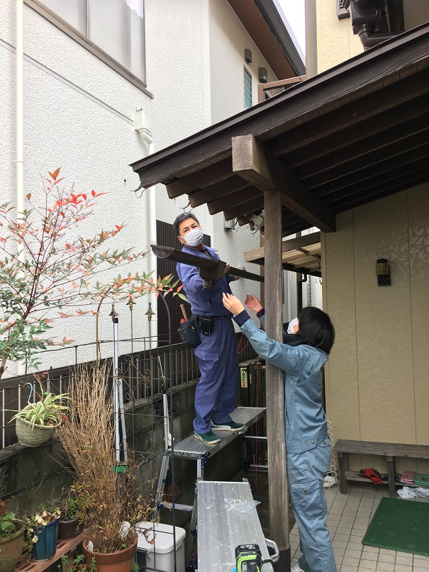 お客様は衣装ケースなどで受けて花壇の水やりに使っていたそうですが、雨樋が無いと困ってしまいますよね。