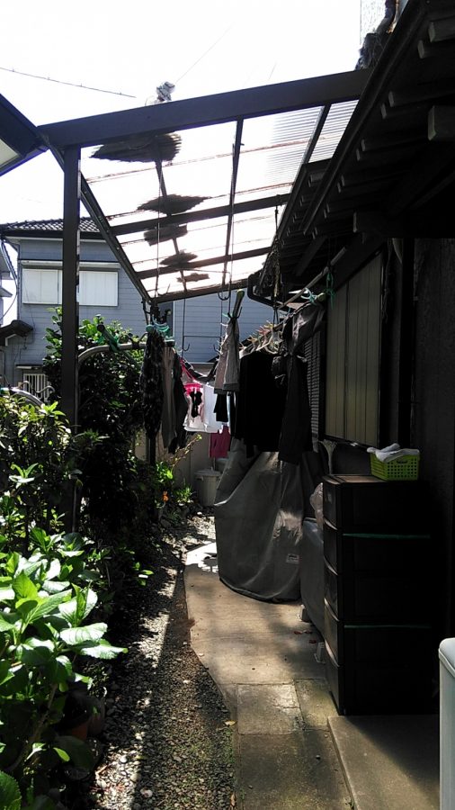 屋根材はポリカ波板を使用しており、割れなどもなく頑張っていましたが、