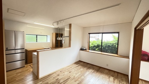 新しく対面キッチンになり家族とのコミュニケーションも取りやすくなり楽しく料理ができそうですね