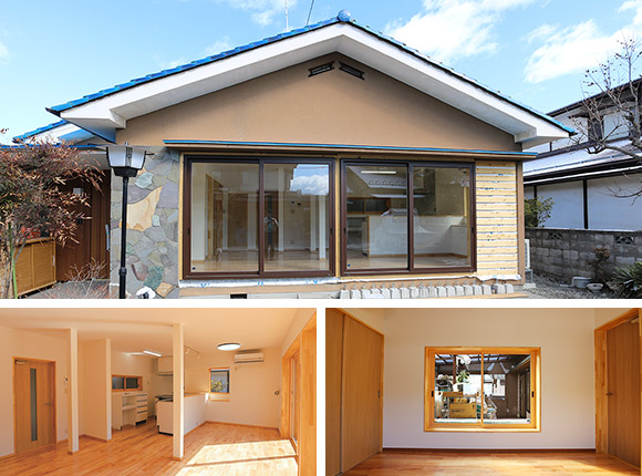 3重の悩みを抱えていたのは、長野県松本市のY様。築45年、平屋のため、夏は太陽の熱が屋根から直接天井に伝わり、室内はとても暑くなります。一方で冬も冷たい隙間風が吹き込み本当に寒かったといいます。また間取りにも問題が。家族が最も長い時間を過ごすLDKの位置が家の西側だったのです。そのため冬は陽が差さず、暖房は一日中つけっ放し。全室に石油ファンヒーターを付けてもまだ寒いという家でした。さらに、数年前の大地震で家の土台が歪み、床は傾き、強風が吹けば家は揺れるという事態に陥っていました。