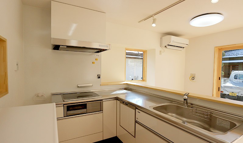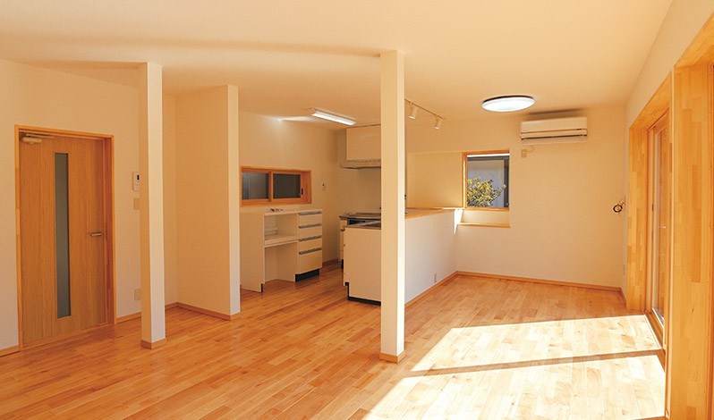玄関を入ると、以前は全ての部屋に入るのに、冷たい廊下を通らねばなりませんでした。今は白を基調とした広くて明るい南向きのLDKに直接入れます。冬でも陽がいっぱいに差し込み、午後になると、暖房を切って過ごすほど暖かいそうです。「この家は、まさに“新築品質”ですよ」とご主人。対面式の最新のキッチンも「快適です」と奥様。強い風が吹いても、もう家はびくともしませんし、床も堅牢。びっくりしたのは壁や天井の防音性で外の音がほとんど聞こえないと言います。「頑強な箱の中で暮らしているような安心感があります」とご主人。夏も、熱気はそれほど家に入り込まないので、エアコンは29度設定で快適だとのこと。冬も、エアコンのみで室温23度をキープ。電気代もそれほど掛からないと言います。何より「もう家の中で我慢しないでいいのが嬉しい」、そう語ってくれました。