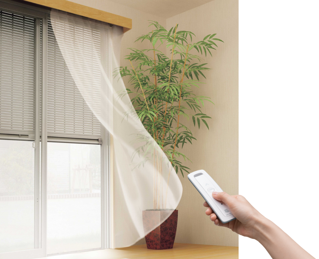 台風以外にも防犯も兼ねた「かんたんマドリモシャッター」(YKKAP)の『リモコンスリットシャッターGR』なら、